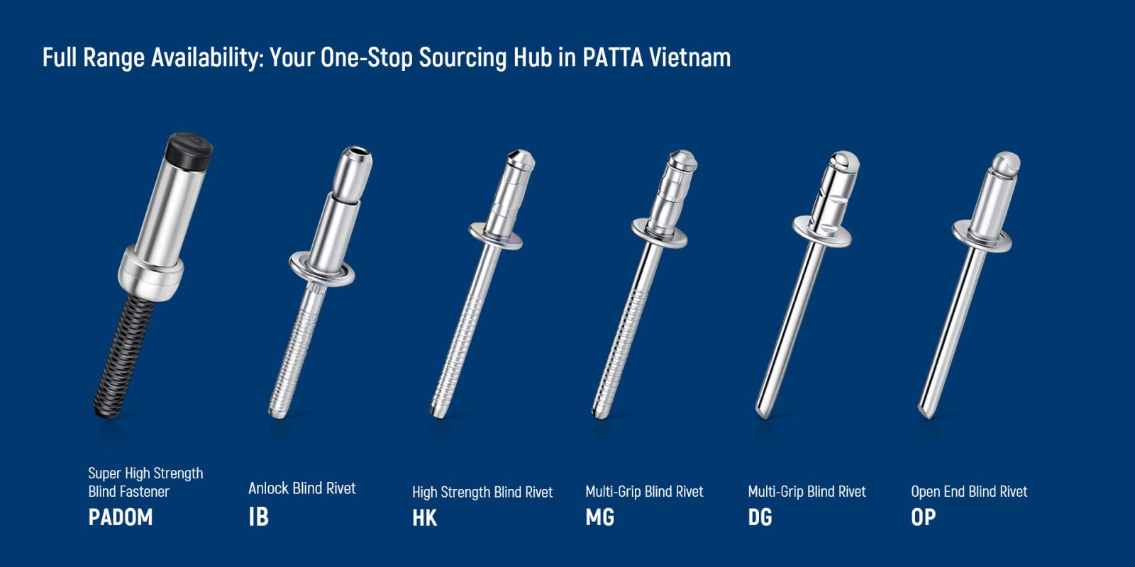 PATTA - The Only Integrated Blind Rivet Manufacturer in Vietnam – Strengthening Your Global Supply Chain with Quality and Reliability. Certified Quality, Stable Supply Chain, and Tariff-Advantageous Sourcing for the US Market.