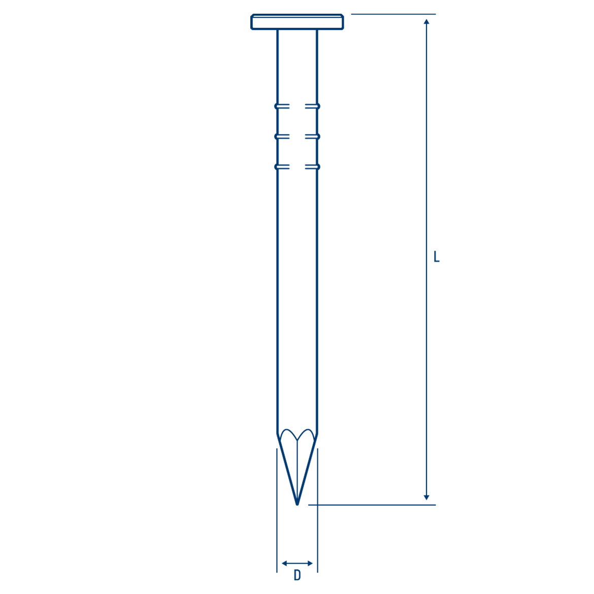 光滑圓柱柄部搭配沉頭設計,無螺紋更容易釘入到混凝土等不同材質中中,能提供日常工程所需支撐力,被運用在連接木頭結構、安裝裝飾物等不同建築工程。
