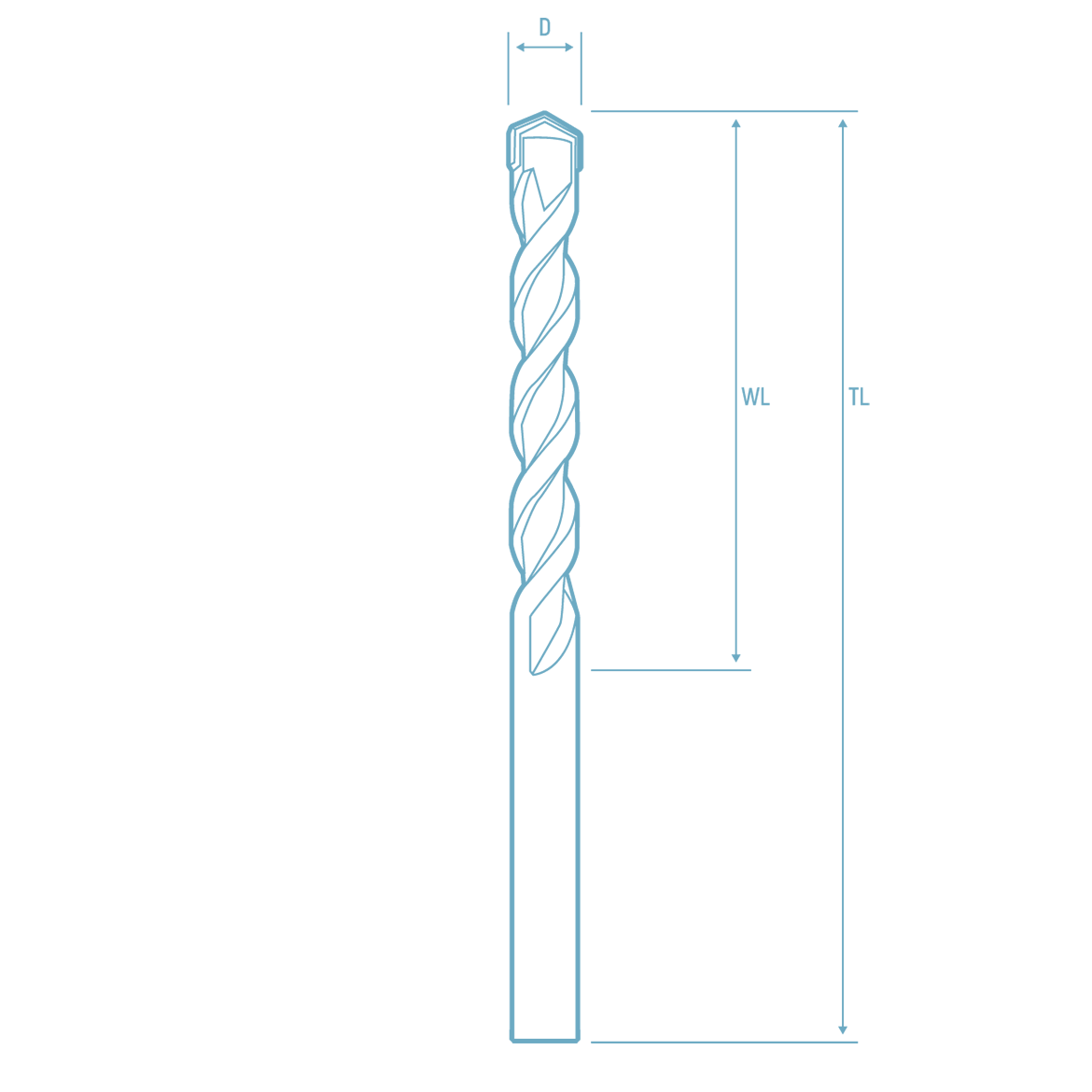 衝擊鑽頭一種,碳鋼材質,透過旋轉和衝擊方式鑽入堅硬材料,如混凝土、磚塊和天然石塊等。
