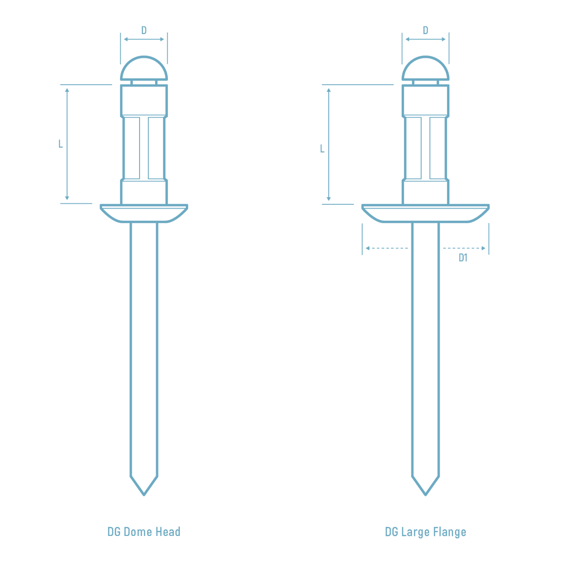 Đuôi có thiết kế hình cầu. Khi tán đinh, lõi đinh kéo phần cuối của thân đinh tán thành trống đôi hoặc trống đơn. Nó có khả năng siết chặt rộng hơn đinh tán truyền thống và có thể buộc chặt các vật thể có kích thước không đều sau khi tán đinh, lõi đinh sẽ được giữ lại bên trong, có đặc tính chống sốc, chống ẩm cao và có thể được sử dụng rộng rãi trong các nhu cầu công nghiệp khác nhau.